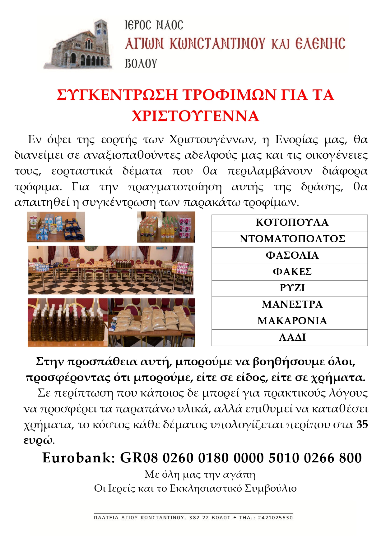 ΣΥΓΚΕΝΤΡΩΣΗ ΤΡΟΦΙΜΩΝ ΓΙΑ ΤΑ ΧΡΙΣΤΟΥΓΕΝΝΑ